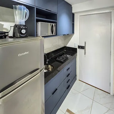 Sí, el apartamento Rooftop Piscina Privativa Casal By Oasis Ferias está equipado con una cocina completa y ofrece también un horno de microondas, un hervidor eléctrico y menaje de cocina. - ❓