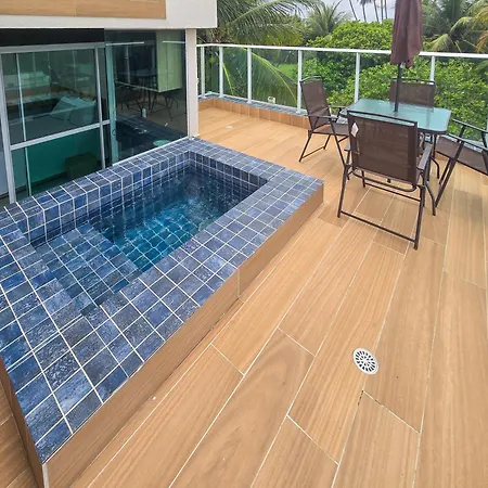 Con una piscina, Rooftop Piscina Privativa Casal By Oasis Ferias Pôrto das Galinhas, un apartamento de 30 m², está situado a poco más de 5 minutos a pie de los Tecmares Maricultura de Camarones. Los huéspedes pueden disfrutar del Wi-Fi.