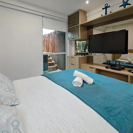 Con un balcón, el apartamento dispone de climatizador, y tiene vistas al mar. Este establecimiento consta de 1 dormitorio. Los visitantes apreciarán la comodidad de un cuarto de baño que incluye secadores de pelo y toallas de baño en este apartamento. Además, hay un inodoro separado y ducha.